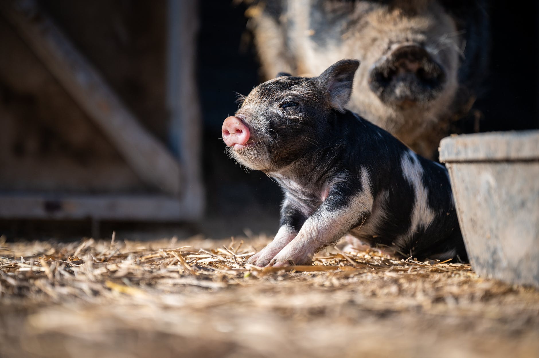 The sun was slowly making its way through the sky and shone on the hurrying pig-robot. She needed to find another material than moving robot arm straw and artificial wood logs before it got dark. Or else the big bad AI wolf would come for her techno-pork meat.